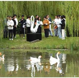 一群鹅和鸭在水边“集合”,几位同学站在不远处,一边投喂,一边观察。而在这片熟悉的池塘畔,还有一位“新朋友”。....