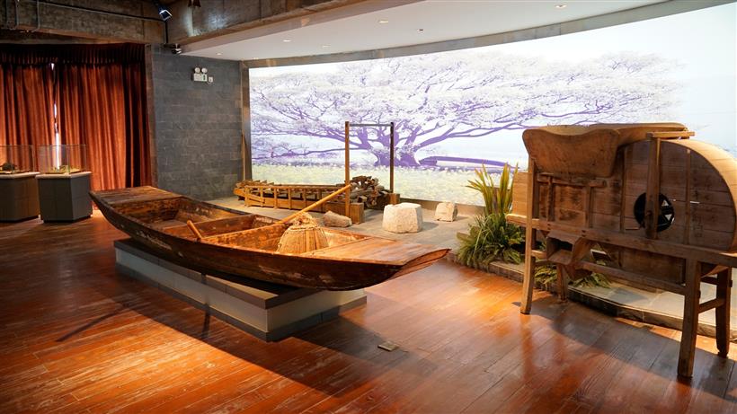 西马博物馆从一楼湿地生态展、二楼湿地生活展到三楼湿地文明展,诠释了从生态文明到物质文明进而走向精神文明的人类文明轨迹;一楼的湿地模型沙盘与天顶的太阳八角纹相映成辉,引人深思“天地”与“人事”之奥妙。