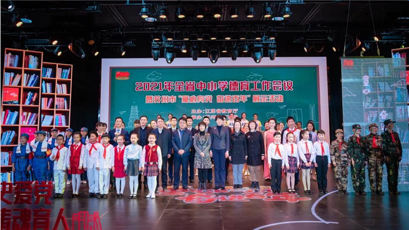 春风十里,阳光灿烂,4月15日,由江苏省教育厅主办、苏州市教育局承办的江苏省中小学德育工作会议在苏州召开。作为会议重要组成部分,上午,江苏省中小学“学史爱党·铸魂育人”主题教育活动暨苏州市“童心向党·奋进百年”展示活动在苏州市电教馆举行。
