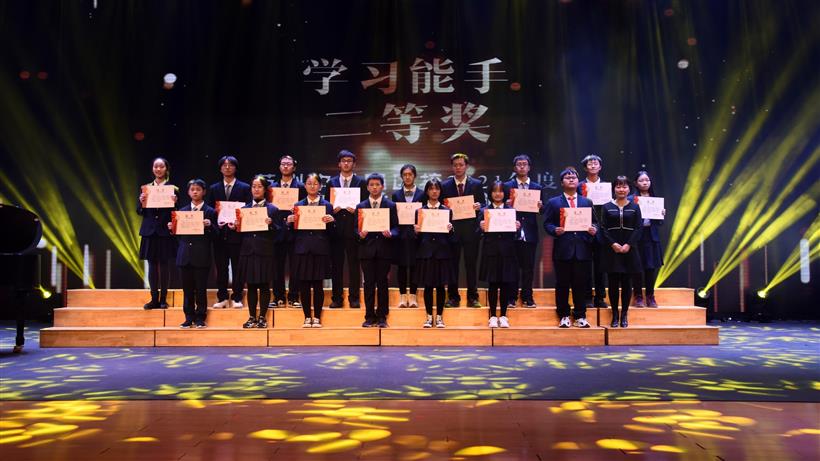 2022年1月20日晚上,我校隆重举行“踔厉向未来——苏州中学园区校2021年度阳光少年、学习能手奖学金颁奖典礼”。苏州中学园区校党总支副书记王建华老师、苏州中学园区校校务委员副主任薛建茹老师、苏州中学园区校校务委员副主任邓娟老师、学生家长中心主任李红娟老师、教学管理中心主任吴冯老师和家委会代表、部分获奖学生家长、杰出校友代表出席本次典礼,初一、高一、高二学生现场观礼,其他年级同学在教室观看典礼直播。