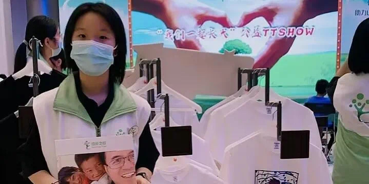 2022年7月23日下午,吴江万宝广场的中庭人头攒动,“我们一起长大”公益TTSHOW活动正火热进行。200多件由孩子们优秀绘画作品印制而成的T恤,经过精彩的展示,再由小小导购员们义卖给现场的爱心人士,义卖所得善款将全部用于成长之树在支付宝公益平台发起的“别让崽崽们再失学”项目。在钱泳、李畅老师组织下,园区校学子积极参与其中。