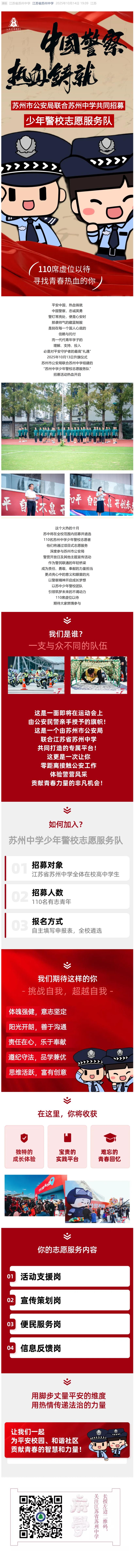 110人!苏州中学少年警校志愿服务队火热招募中!