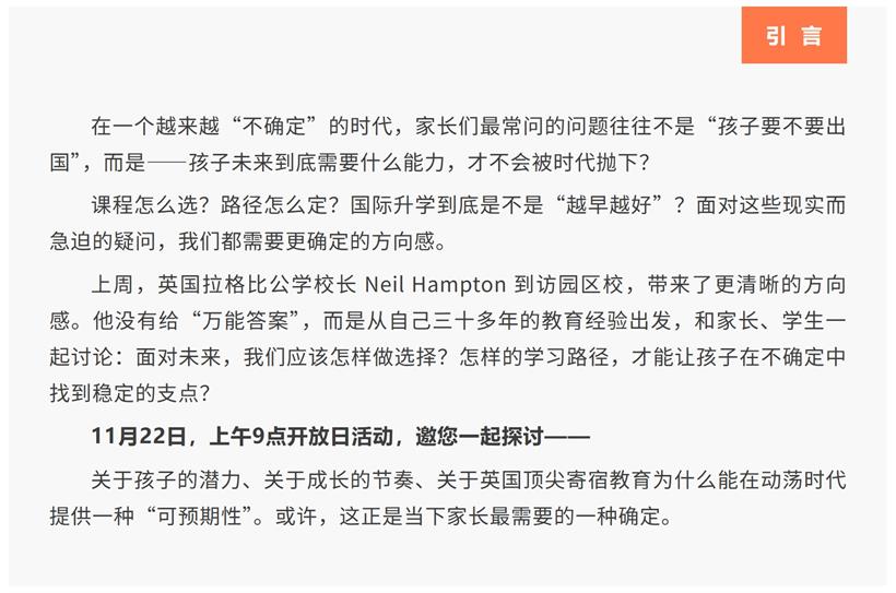 英国拉格比公学校长到访:在不确定的时代,找到你最具确定性的未来