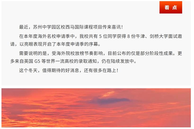 重磅喜报 | 苏中园区校国际部5人获得8份牛剑面邀,于绚烂处期待更辉煌