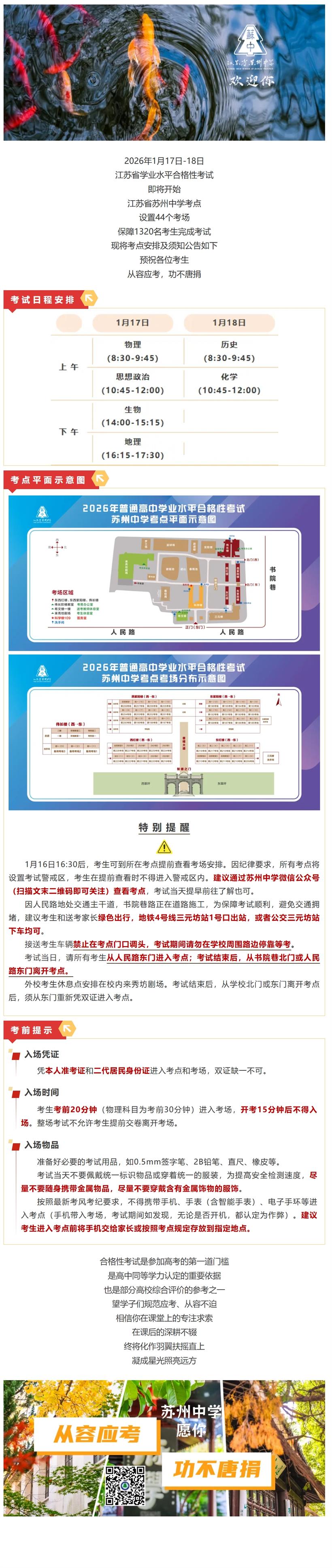 2026年学业水平合格性考试明日开考 | 苏中考点温馨提示