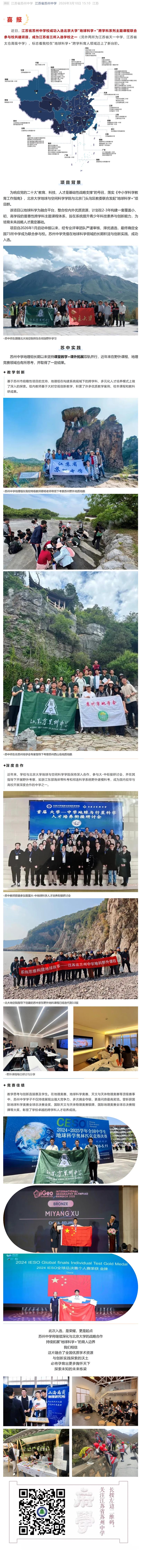 喜报 | 苏州中学入选北大“地球科学+”项目,共筑跨学科育人新高地
