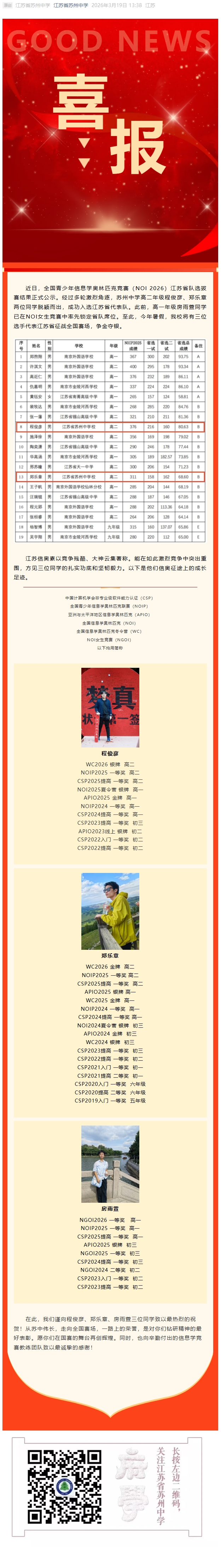 喜报 | 苏中3名学子入选信息学奥赛省队!